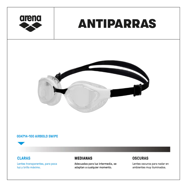 Tan cómodas que casi no las sentís. Las arena Air-Bold Swipe son las primeras antiparras fitness de la marca con tecnología anti-empañado Swipe, pensadas para entrenar con máxima comodidad, estabilidad y visión siempre clara.