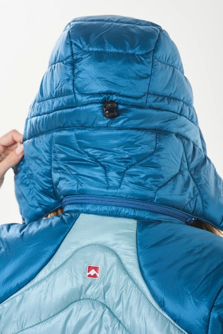 Campera con capucha, ultra liviana y compacta, ideal como abrigo intermedio para montaña y actividades outdoor. Con relleno PRIMALOFT® Silver que brinda calor sin peso.