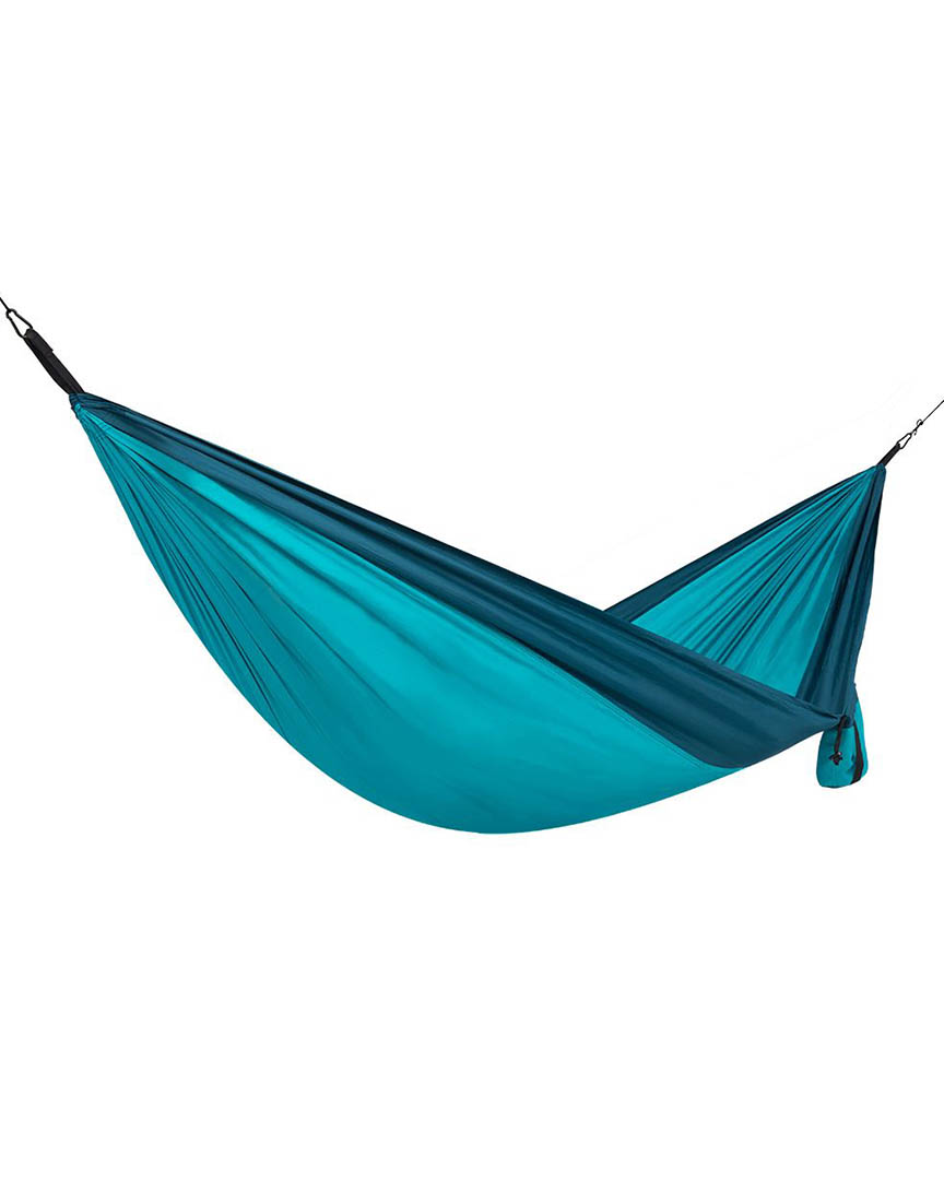 Diseñada para quienes disfrutan del descanso en la naturaleza, esta hamaca combina resistencia y comodidad gracias a su tejido de poliéster 340T antidesgarro, suave al tacto y altamente duradero. Su estructura soporta hasta 180 kg, con costuras reforzadas que garantizan seguridad y estabilidad. Se pliega fácilmente en su bolsa incorporada con cierre de cordón, facilitando el transporte y almacenamiento. Además, incluye sogas y mosquetones de hierro para una instalación rápida en cualquier entorno.