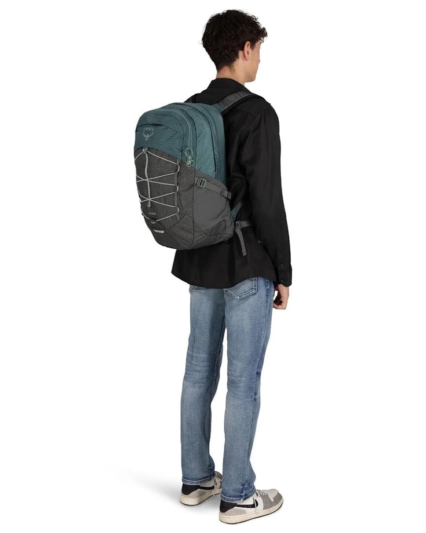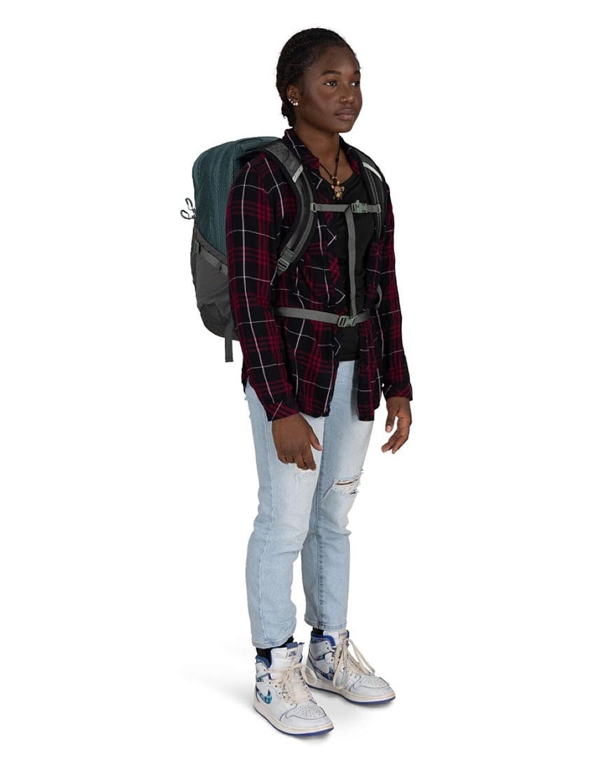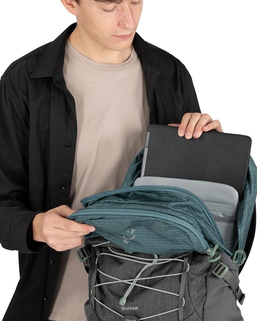 Pensada para acompañarte tanto en la ciudad como en escapadas al aire libre, la Quasar 26 combina practicidad y resistencia. Su funda acolchada protege laptops de hasta 14″, mientras que los bolsillos organizadores mantienen los objetos pequeños en orden y a mano. El sistema de bungee (ajuste elástico) frontal permite sujetar elementos de uso rápido, y los bolsillos laterales de malla ofrecen acceso cómodo a botellas o accesorios. La suspensión AirScape junto con el arnés BioStretch proporcionan un transporte estable y con la espalda ventilada, incluso en jornadas largas. Fabricada con tejidos reciclados aprobados por bluesign® y tratamientos DWR libres de PFAS, garantiza durabilidad con bajo impacto ambiental.