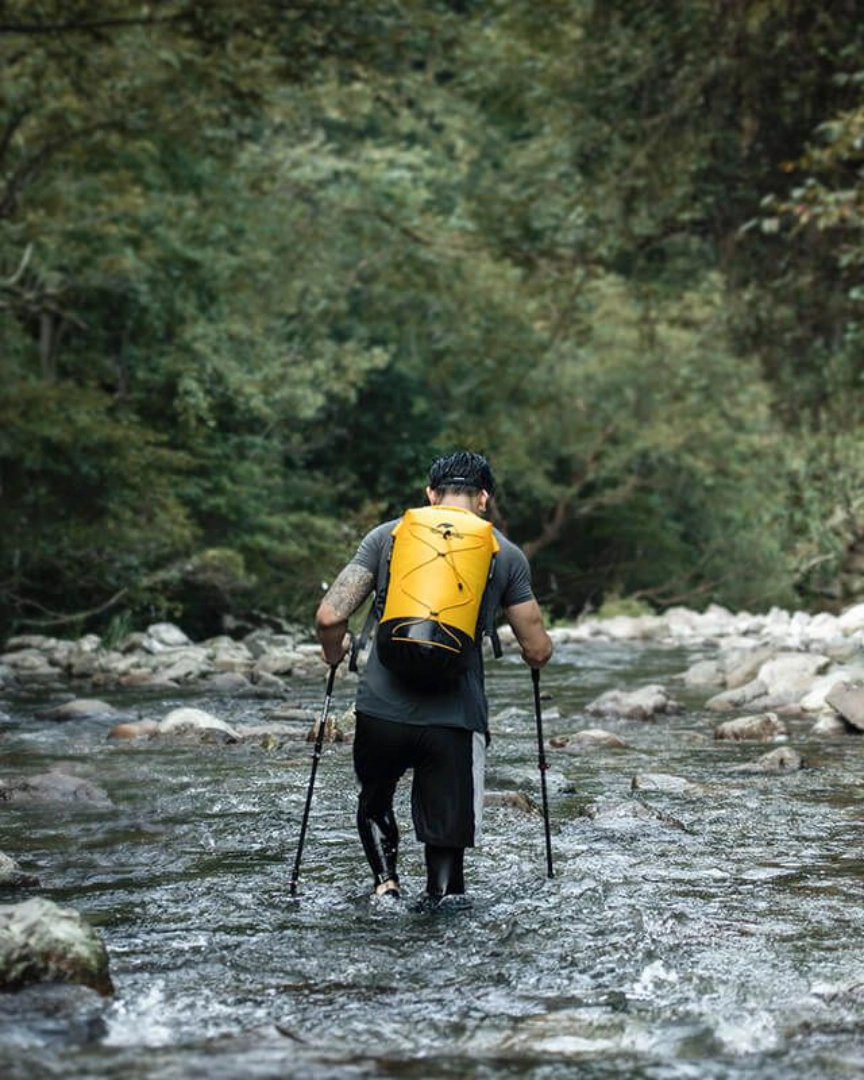 Es una mochila totalmente impermeable, pensada para entornos exigentes y actividades donde la exposición al agua es constante. Está fabricada en nailon 420D con recubrimiento compuesto de TPU, un material técnico que brinda excelente resistencia a la abrasión y al desgaste, sin comprometer el peso.
