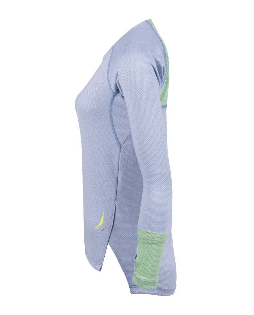 La remera Aeris combina diseño anatómico, tecnología textil y confort térmico en una prenda especialmente desarrollada para actividades aeróbicas en condiciones de alta exposición solar. Confeccionada en tejido Polartec® Delta, fusiona la suavidad y frescura del algodón con la eficiencia del secado rápido de las fibras sintéticas, permitiendo una óptima regulación de la temperatura corporal. Su calce holgado y la ausencia de costuras en zonas clave evitan roces durante el movimiento, mientras que los detalles funcionales –como pasa pulgar, abertura en el puño para pulsera y paneles reflectivos– aportan seguridad y comodidad adicional.